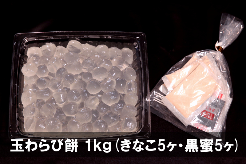 HOME > 商品一覧 > 玉わらび餅 1kg (きなこ5ヶ、黒蜜5ヶ付) <冷蔵便>